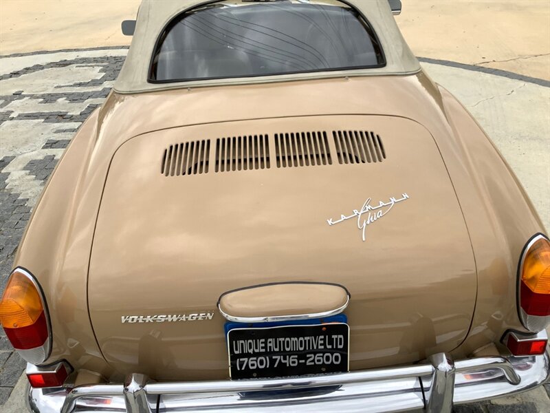 1971 Volkswagen Karmann Ghia Convertible, showing 91k miles. It is a documented one-owner vehicle that was sold new in Denver, CO, in July 1971 and brought to CA in 1977 when the original owner moved here. Equipped with a 4-speed manual transmission,1600cc flat-four engine, front-wheel disc brakes, dual exhaust outlets, chrome bumpers with 15-inch steel wheels with Volkswagen hubcaps. Absolutely no rust anywhere.(Please see pics of the underside ) FULLY INSPECTED WITH OUR COMPLEMENTARY 120-POINT INSPECTION. WE ARE LOCATED IN ESCONDIDO, CA. WE CAN ACCOMMODATE YOUR LOGISTIC NEEDS WHETHER ACROSS THE NATION OR THE WORLD. SHOWN BY APPOINTMENT UNIQUEAUTOLTD.COM or +1 760-746-2600 YOUTUBE WALK AROUND VIDEO : https://www.youtube.com/watch?v=pvuGZxonEbs