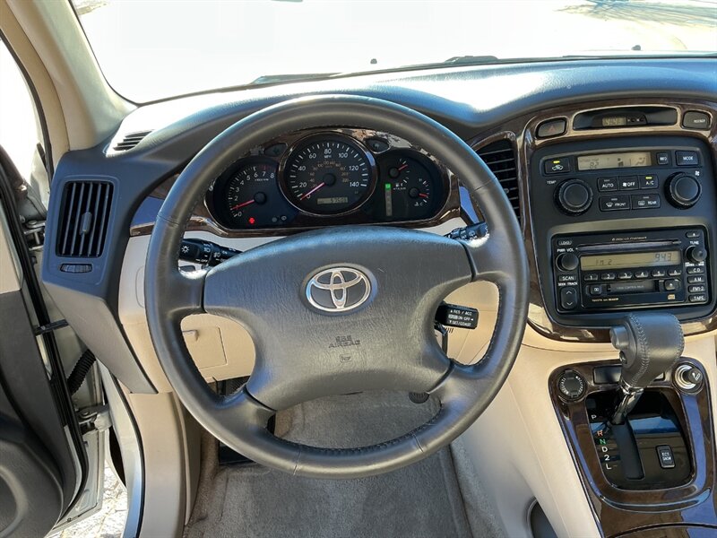 2003 TOYOTA HIGHLANDER LIMITED AWD, LOW 57000 MILES 1 OWNER CA CAR. SILVER WITH IVORY LEATHER SEATING. THIS LITTLE UNICORN IS AMAZINGLY CLEAN THROUGHOUT. NO MAJOR DENTS OR DINGS, WITH THE INTERIOR BEING SPOTLESS. LOADED WITH ALL THE POWER AMENITIES, INCLUDING A POWER SUNROOF, DUAL POWER SEATS, MOONROOF, AND A JBL SOUND SYSTEM WITH BOTH CD AND CASSETTE PLAYER. WE ARE LOCATED IN ESCONDIDO, CA. WE CAN ASSIST YOU WITH YOUR LOGISTIC NEEDS WHETHER ACROSS THE NATION OR ACROSS THE WORLD. SHOWN BY APPOINTMENT UNIQUEAUTOLTD.COM 1+760-746-2600 YOUTUBE WALK AROUND VIDEO :https://www.youtube.com/watch?v=KTw4FlS-tV8
